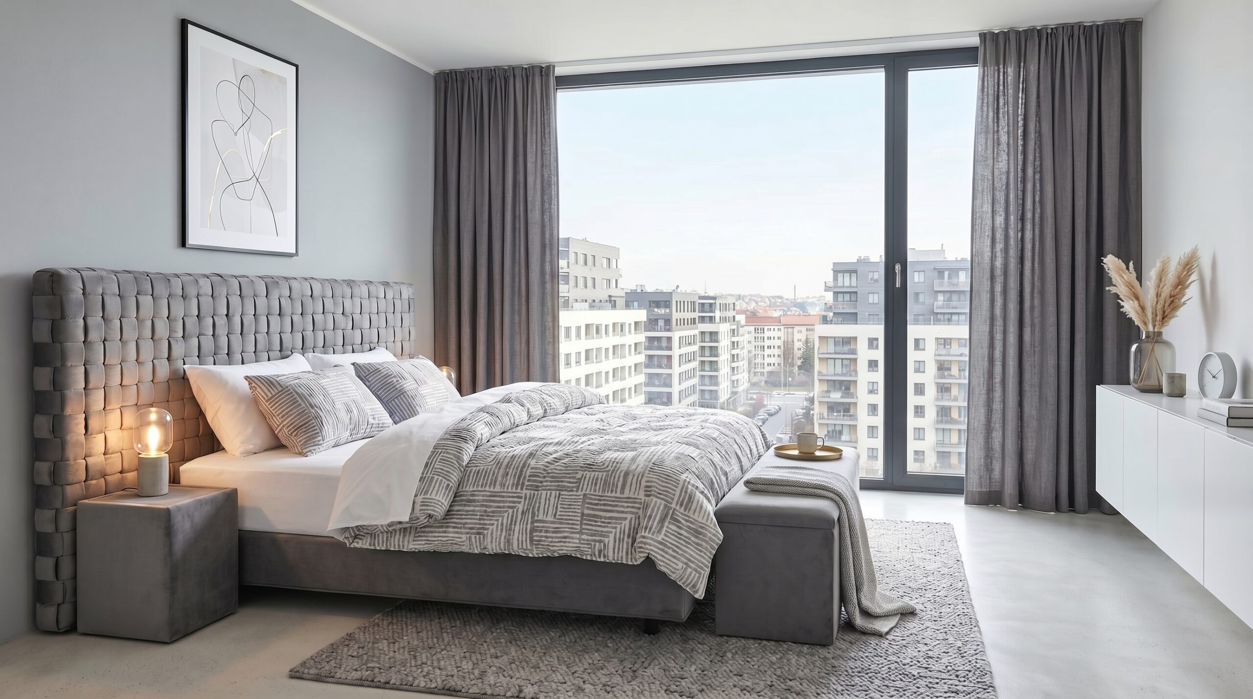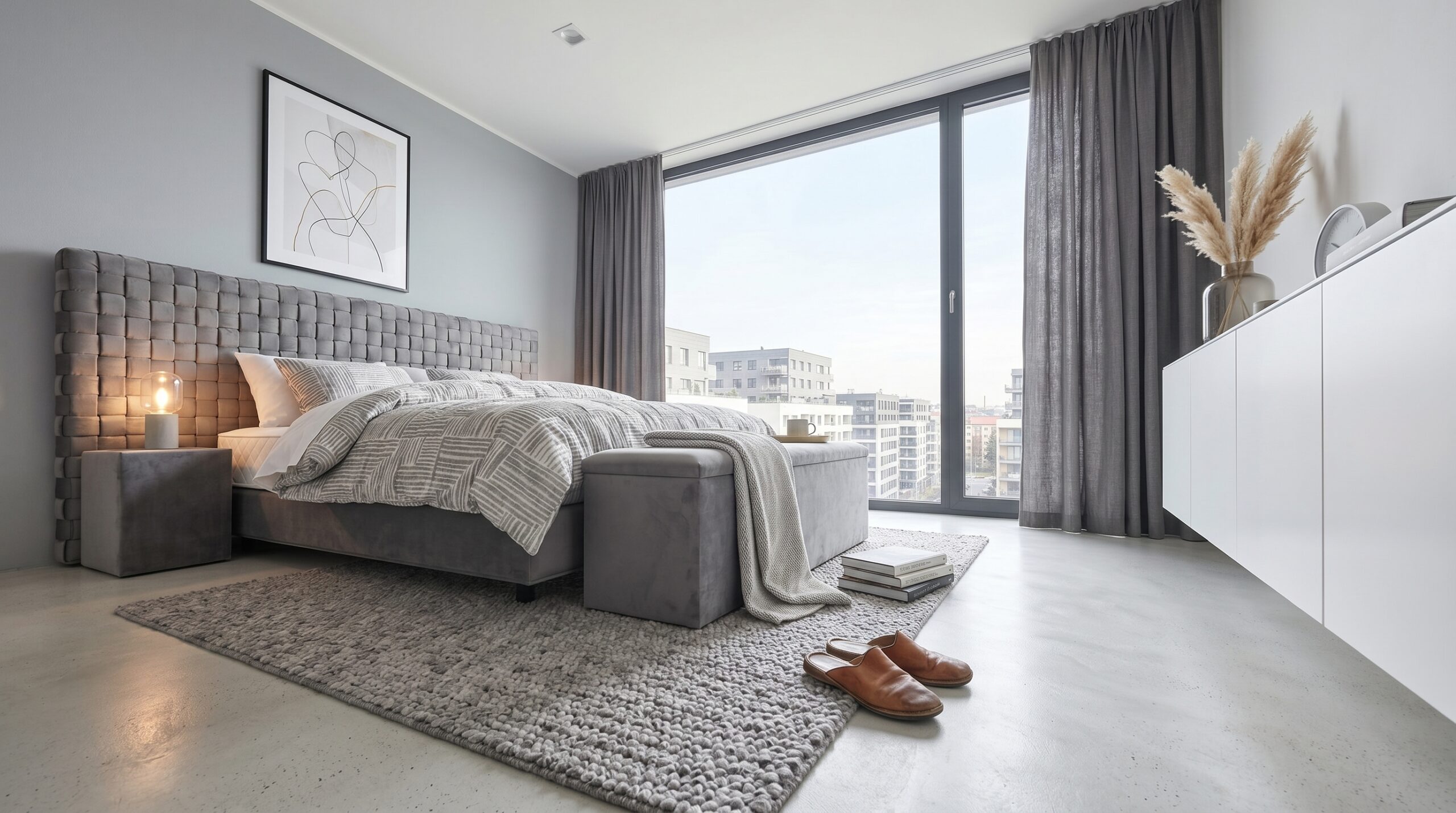 Srdcem ložnice se stala postel Chess Mini – kompaktní, ale charakterní. Její čisté linie a precizní čalounění perfektně odpovídají duchu moderní architektury novostavby. Nic zbytečného, vše podstatné.